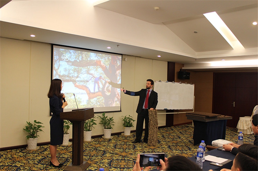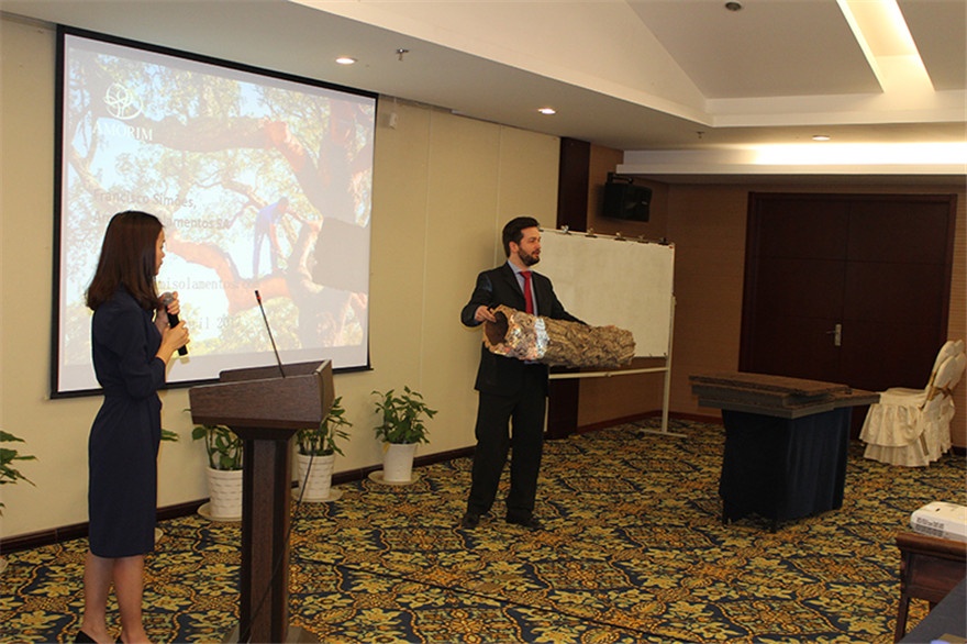 接着由葡萄牙阿默林集团驻中国办事处联络人黄达尔先生对软木制品以及它的生产流程和技术性能、应用领域,做出了精彩的讲述。