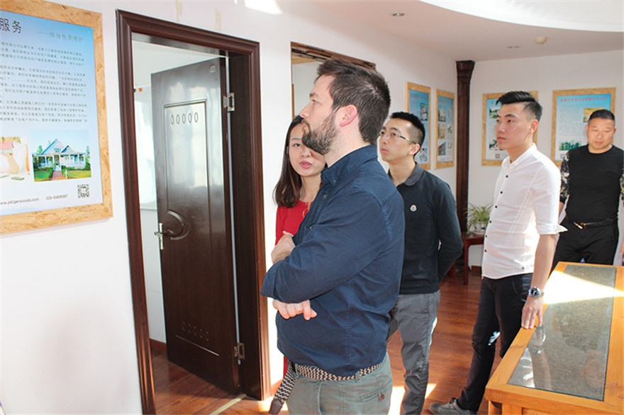 18日上午,弗兰西斯科先生和黄达尔先生来到江苏森之虎建筑工程有限公司参观考察。公司热情招待,并介绍公司的文化理念、发展情况、工程项目、各类产品以及对葡萄牙软木板的理解和应用。