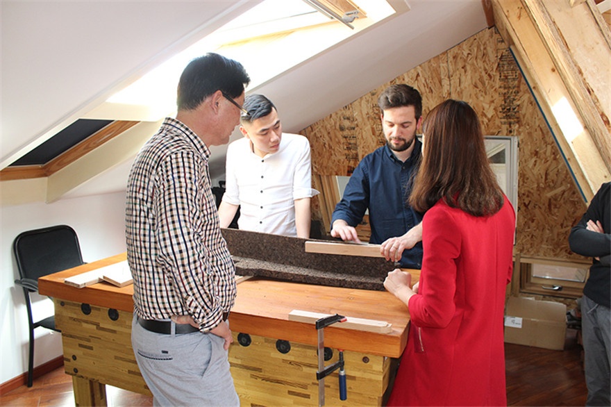 随后,众人来到公司二楼的操作台前,在翻译的协助下,弗兰西斯科先生认真讲解软木的应用,很多的想法和操作令公司众人茅塞顿开。