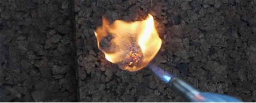 4cm厚度的葡萄牙软木板用800度的火枪燃烧,经过70分钟才烧穿;葡萄牙软木板燃烧无滴落物